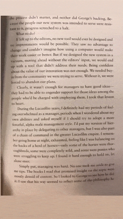 Management must include anybody in the invitation to suggest new ideas. One of the examples given comes from a statement of an employee that stated: “My job was to select the best ideas and the best people from 300,000 employees. That is what a leader must do”.