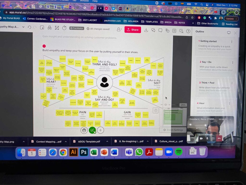 I tried my best to be aware of the creative process, so first, I was delegated to analyze all the information gathered in previous days, from surveys to the people of Breda. Then I mapped the information and could organize the input from the surveyed people in a visual manner.